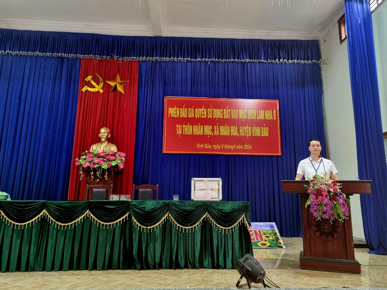 Sáng 06/04/2024, tại Nhà văn hóa xã Nhân Hòa, huyện Vĩnh Bảo, Trung tâm phát triển quỹ đất huyện Vĩnh Bảo phối hợp với Công ty Đấu giá hợp danh ASIA và các đơn vị liên quan tổ chức đấu giá Quyền sử dụng đất ở đối với 15 lô đất mục đích làm nhà ở tại Thôn Nhân Mục, xã Nhân Hòa.