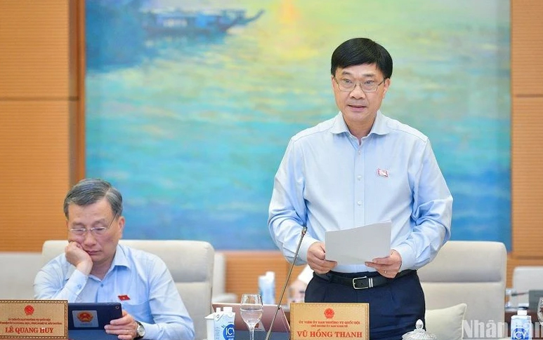 Chủ nhiệm Ủy ban Kinh tế Vũ Hồng Thanh trình bày báo cáo thẩm tra sơ bộ dự án Luật. (Ảnh: DUY LINH)